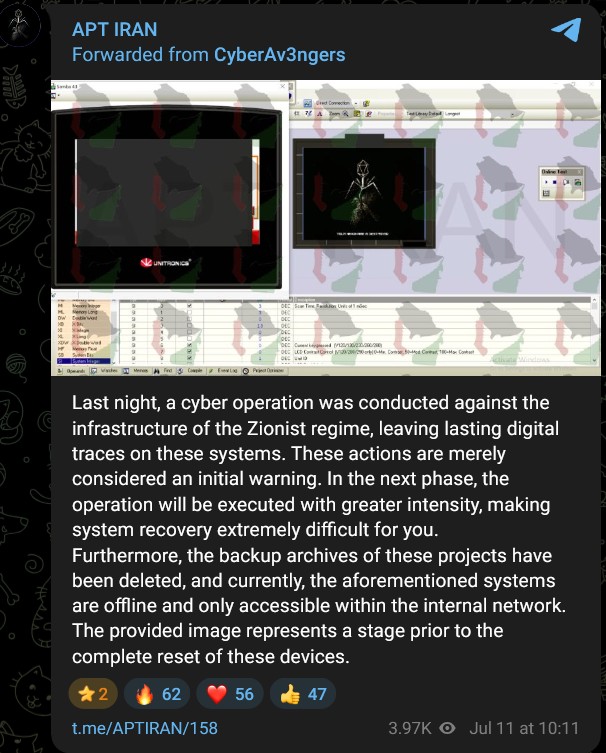 At the end of H1, a with a new persona ,APT IRAN, began claiming attacks on the same types of PLCs previously targeted by CyberAv3ngers. The group appears to be another iteration of a recycled IRGC-linked identity. The full report explores APT IRAN’s messaging, tooling, and close operational overlap with its predecessors.