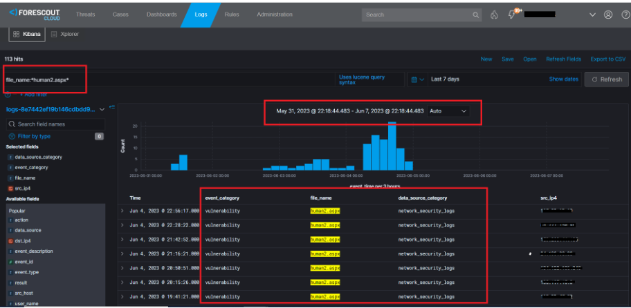 Beyond building a comprehensive inventory, Forescout’s extended detection and response solution can also help to directly detect and respond to this threat. Forescout Threat Detection & Response can detect the human2.aspx webshell from both EDR and network security logs. The following rules have been added to Forescout Threat Detection & Response to provide holistic detection for this threat: