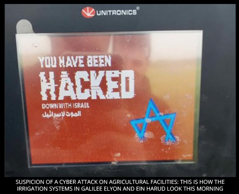 The image posted on the HMI screen appears quite similar to those of other defacement attacks against irrigation systems from the same manufacturer in Israel in April 2023: