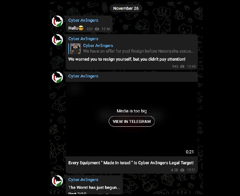 Taking full credit for the attack on November 26, the Cyber Aveng3rs posted on their X account and Telegram channel the following messages, Clearly stating that their attack scope has expanded (“EVERY EQUIPMENT MADE IN ISRAEL…”) and that more attacks can be expected (“the worst has just begun…”):