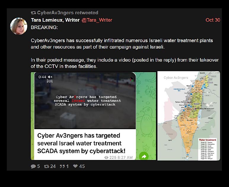 Figure 4 – October 30, 2023 Retweet of Cyber Av3ngers claim