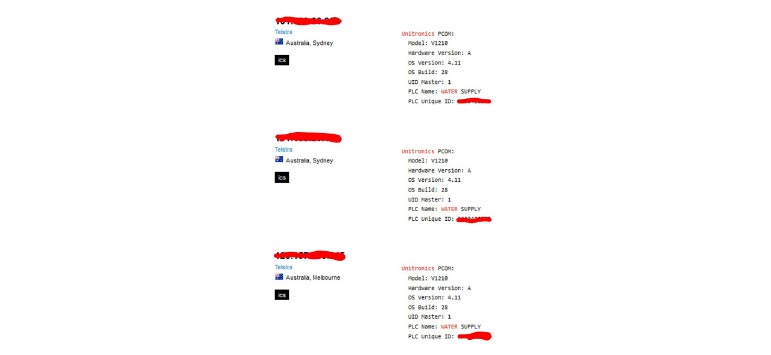 Not all of the Internet-exposed Unitronics PLCs run water treatment or even critical infrastructure. For instance, we see controllers for swimming pools and other private facilities. However, many of the devices are potentially connected to critical infrastructure, such as the three PLCs located in Australia and labelled “Water supply” (see below):