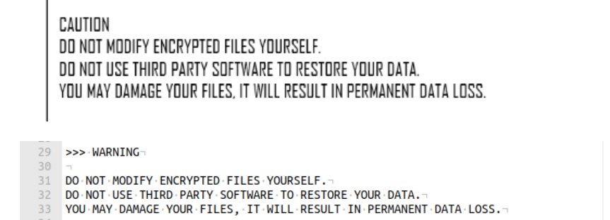 The JSON config contains quite a few similarities to the ALPHV ransomware that we analyzed in the past. We also noticed a few sentences in the ransom note that appear to be copied from the ALPHV sample mentioned by CISA: