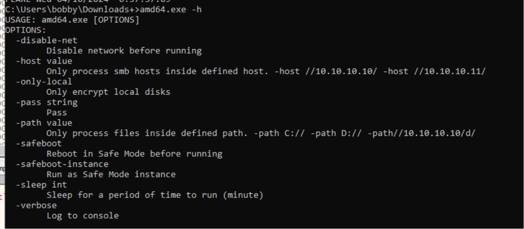 | amd64.exe | 7539bd88d9bb42d280673b573fc0f5783f32db559c564b95ae33d720d9034f5a | This executable encrypts the victim’s filesystem. It can also stop virtual machines and encrypt remote systems (potentially using external tools, such as psexec and smbexec). |