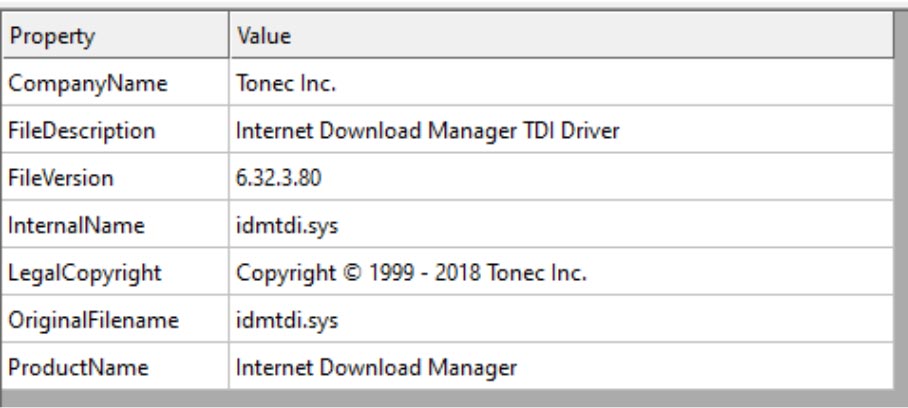 This new variant of POORTRY masquerades as Internet Download Manager TDI driver from Tonec Inc.: