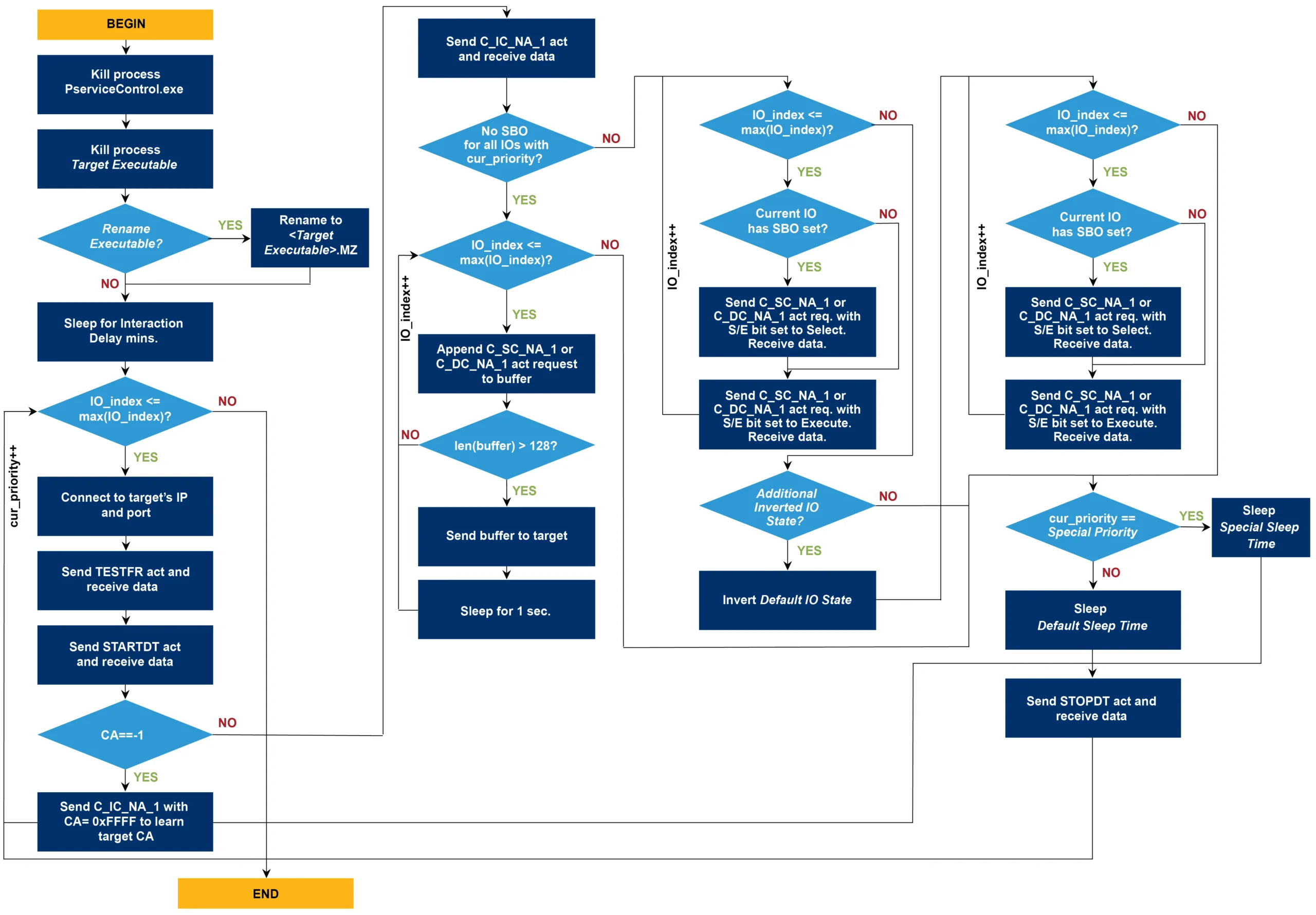 Figure 1 – Industroyer2 execution workflow (from our analysis done in 2022)