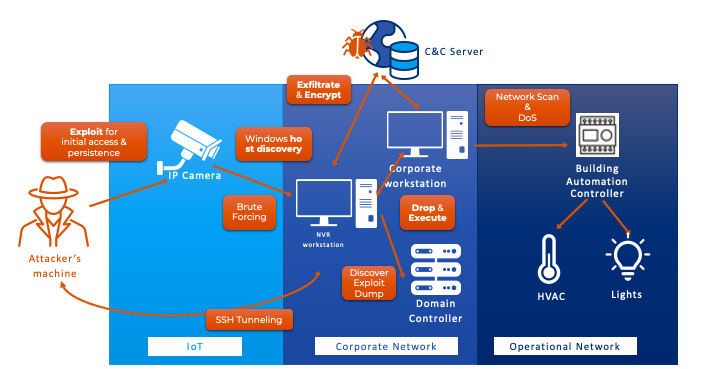 Vedere Labs recently developed a proof-of-concept (PoC) ransomware for IoT (R4IoT) using as an example attack scenario a hospital network containing IoT devices such as IP cameras, IT workstations and OT in the form of building automation controllers. The goal of R4IoT was to: