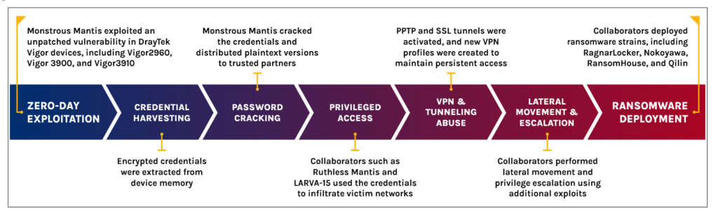 Network perimeter devices have become a critical initial access target for sophisticated threat actors. Ransomware operators are increasingly exploiting vulnerabilities in routers and VPN appliances. This analysis details a coordinated campaign targeting DrayTek Vigor devices. Our findings reveal a complex ecosystem of cybercriminal collaboration and systematic network infiltration.